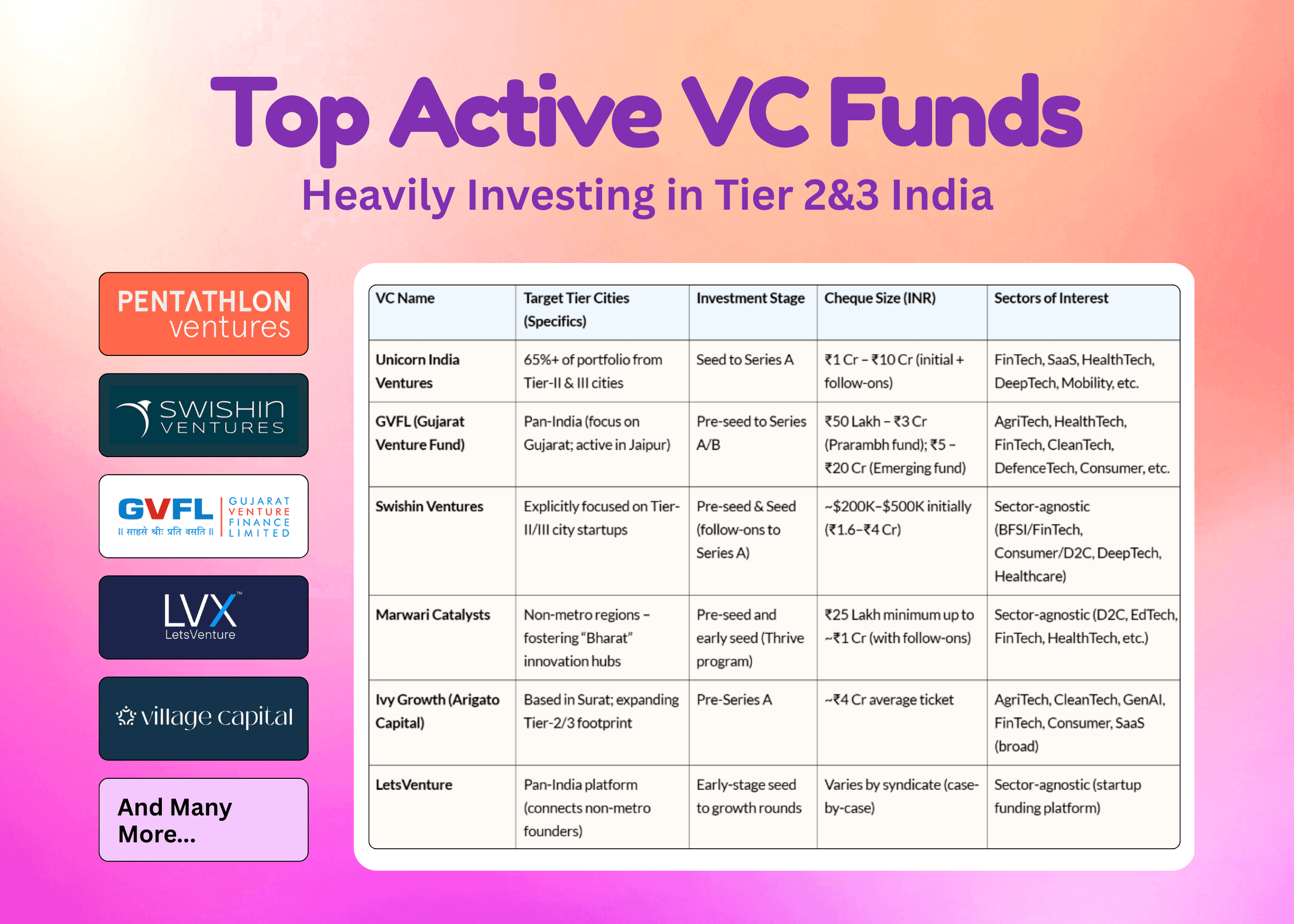 Building outside Tier 1? Stop pitching VCs who only care about metros. We found top active funds specifically hunting for Tier 2/3 founders in 2025. Get their check sizes and sectors of interest....